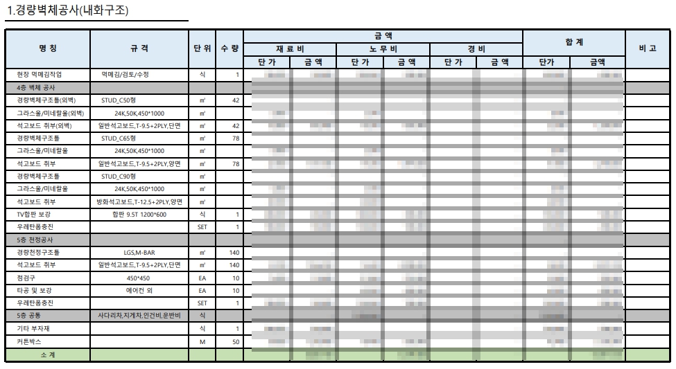 견적서를 드릴 때도 기본 공사 항목뿐만 아니라, 예상되는 별도 비용 항목을 함께 안내드립니다.