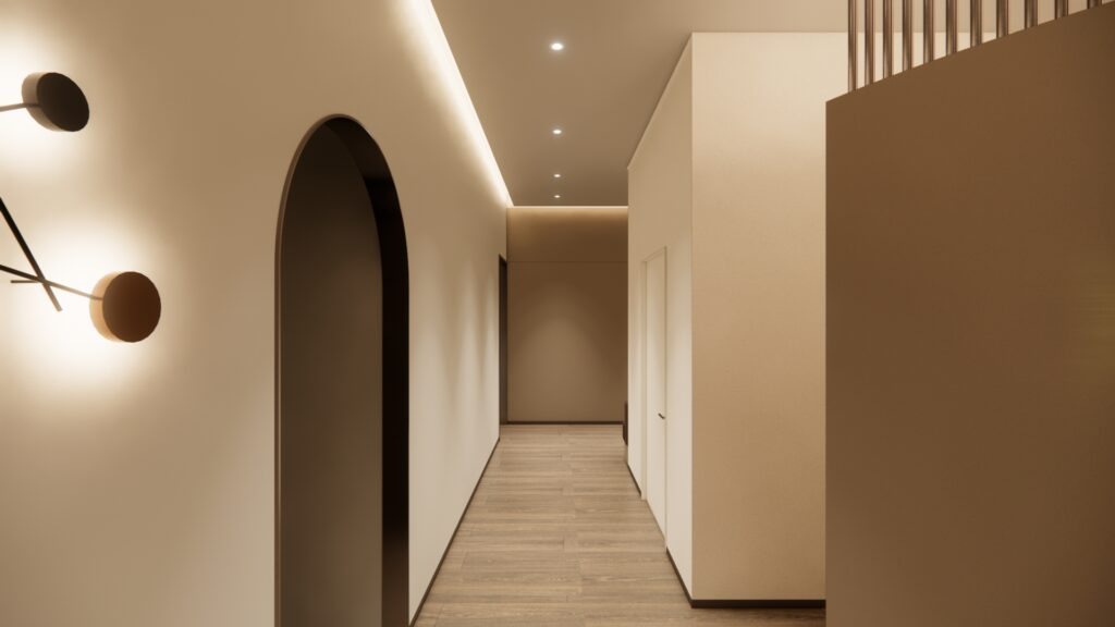 이 장치는 시선을 자연스럽게 위로 올려주면서 공간이 더 넓어 보이는 효과가 있습니다.