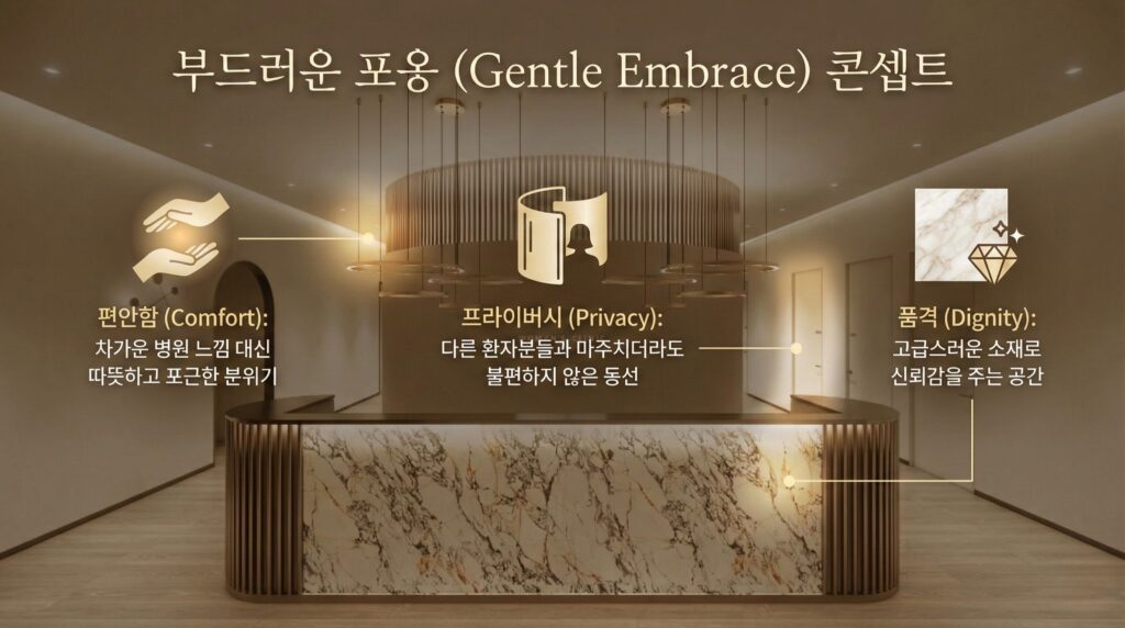 마치 따뜻한 손길로 환자분들을 감싸안듯이, 공간 자체가 위로가 되는 병원을 만들어드리고 싶었거든요.