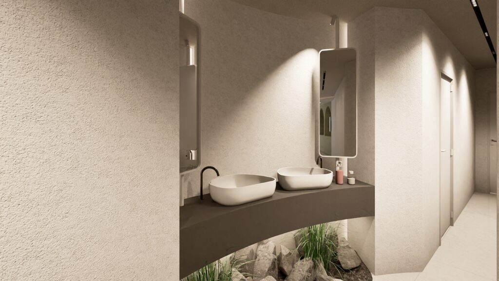 서비스 공간에는 아치 포인트벽을 조성하여 공간에 활기를 불어넣었습니다.