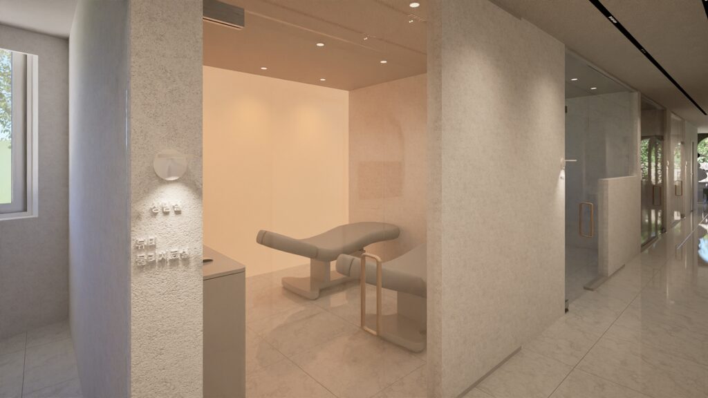 뷰티 물리치료실은 공간이 좁은 편이라 효율적인 디자인이 필요했습니다.